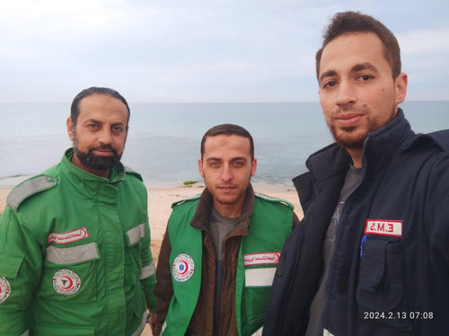 المسعف نبيل مع رفيقيه المسعفين حسين وخالد