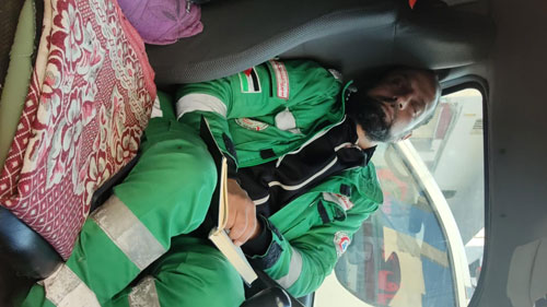 نقاط عدة مثيرة للاهتمام أخبر بها المسعف المتفاني مراسلة "آفاق البيئة والتنمية"، كان منها أنه لم ينم على أي سرير أو فراش على مدار سبعة شهور، موضحًا: "لم أغادر مركبة الإسعاف إطلاقًا، هذه المركبة أصبحت هي المأوى، فيها أتناول طعامي، وحتى دورة المياه، لم أغادرها إلا يوم إصابتي، حينها فقط نمتُ على فراش المشفى".