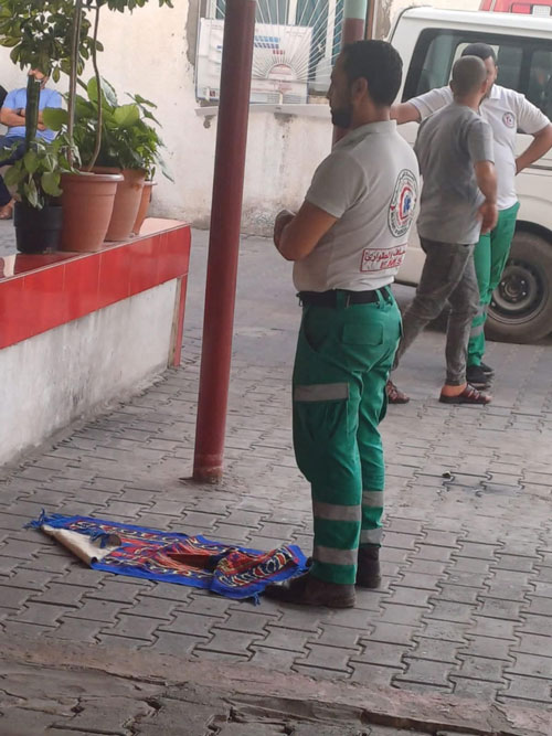 المسعف نبيل يصلي في ساحة المستشفى