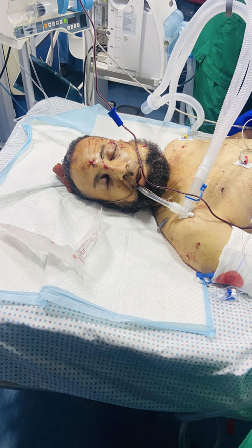 المسعف نبيل بعد استهدافه بطائرة استطلاع حيث كان في حالة حرجة