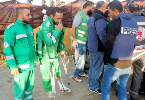 بعد الإصابة يحاول المسعف نبيل أن يقوم بما يستطيع