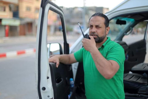 المسعف نبيل أبو صقر أثناء قيامه بعمله