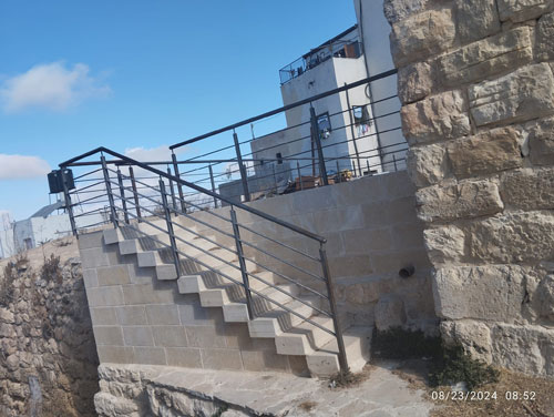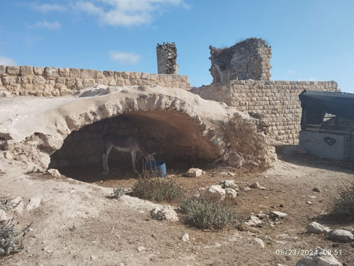 بعدها، وصلنا إلى "عين الزهرة" التي تحوي نفقًا محفورًا في الصخر مع درج حجري ومقابض حديدية؛ بـ طول مئة متر تقريباً، ليصل إلى منطقة قلعة "مملكة جبعون" الكنعانية التي كان الأهالي يستخدمونها لجلب المياه في أثناء الحصار.
