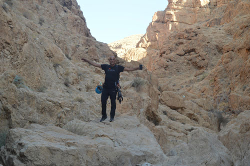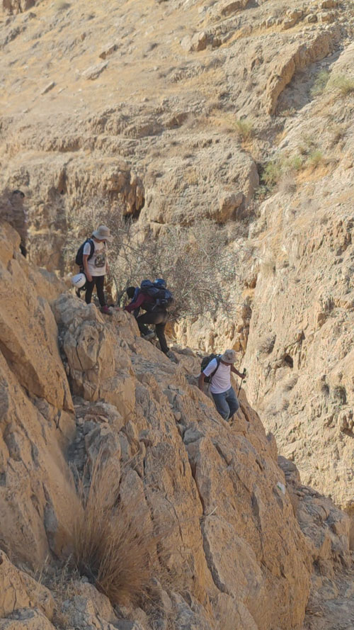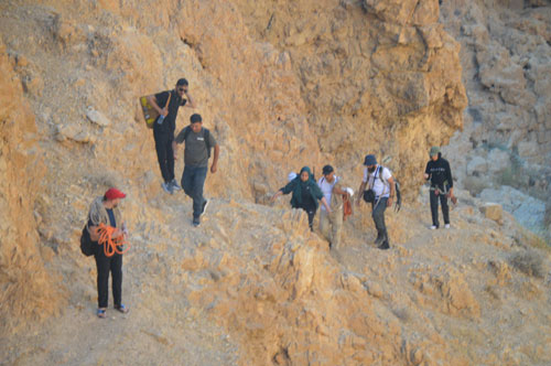 سير الفريق عبر الجرف الصخري نحو دير وادي المقلق |