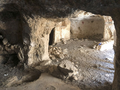 عند المدخل، ظهرت آثار غرف صغيرة منحوتة في الصخر، تشهد على حياة النسك والتقوى التي عاشها الرهبان والنسّاك الأوائل في العهد البيزنطي، منذ القرون الأولى لانتشار المسيحية في أرض فلسطين.