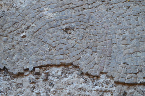 بقايا فسيفساء لإحدى غرف دير المقلق التي تعرضت للتلف عبر الزمن |