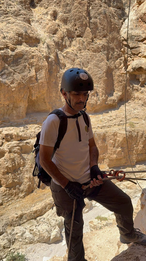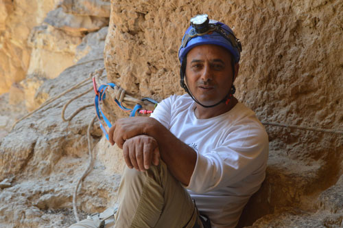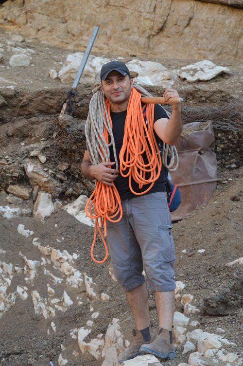 المستغور محمد أبو نوح يحمل حبال الإنزال الخاصة في وادي المقلق |
