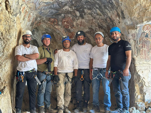وبعد نحو ساعتين من التحدي والمثابرة، وصل الفريق إلى الهدف المنشود، دير قديم نُحت في صميم الجرف الصخري، متخفّيًا بين طيات الطبيعة، وصامدًا منذ أكثر من ستة عشر قرنًا كأنّه حارسٌ صامت لذاكرة الأرض.