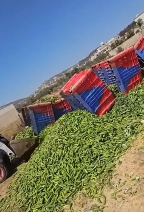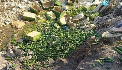 | فائض ضخم من الخيار الفلسطيني بالضفة الغربية مصيره مكبات النفايات |