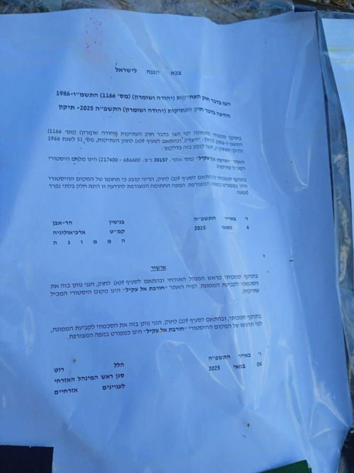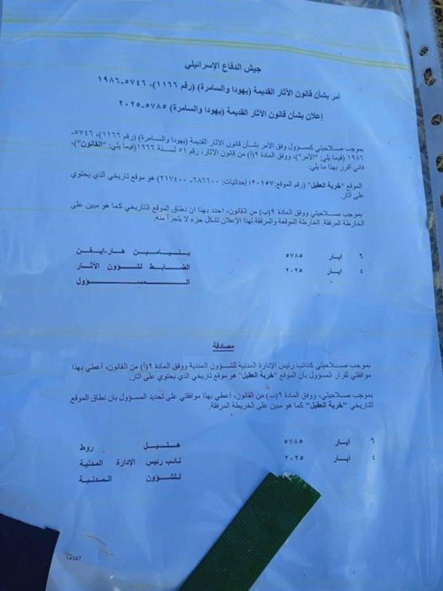ويلفت إلى مشروع قانون إسرائيلي يغير من صلاحيات ما تسمى "سلطة الآثار" في الضفة الغربية، التي تعد إحدى وحدات جيش الاحتلال، ويطلق يدها للعمل فيها.