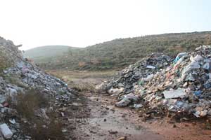| المكب الاول للنفايات الإسرائيلية الذي تم اغلاقه في قرية رنتيس عام 2011 |