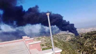 مصدر هذه السحب السامة حريق اندلع في مكب عشوائي للنفايات مقام في واد سحيق بمنطقة كريسة غرب الخليل