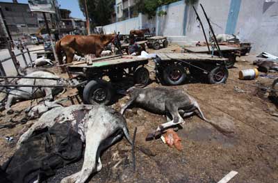 نفوق الحيوانات في غزة بسبب موجات الحر