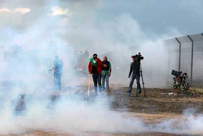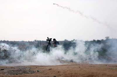 الصحافة في غزة تتحدى الغازات الإسرائيلية السامة وتواصل تغطيتها للمواجهات- تصوير ياسر قديح