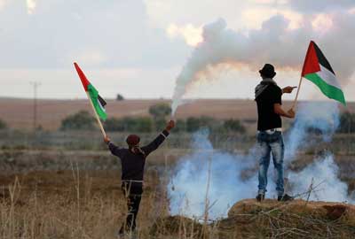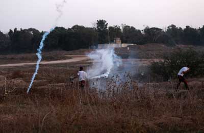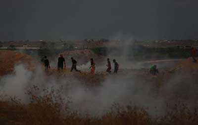 شباب فلسطينيون في غزة يتحدون الغازات الإسرائيلية السامة- تصوير ياسر قديح