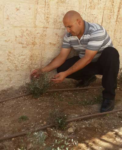 داود هالي أثناء إرشاده الطلاب على أعمال البستنة